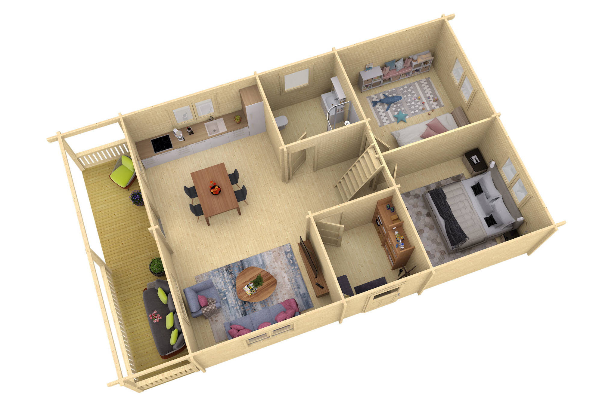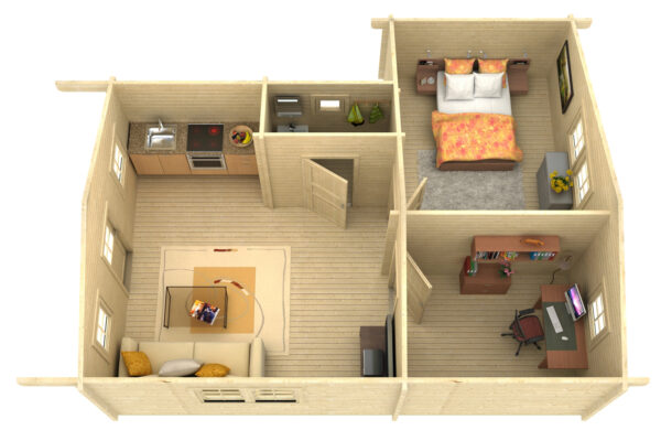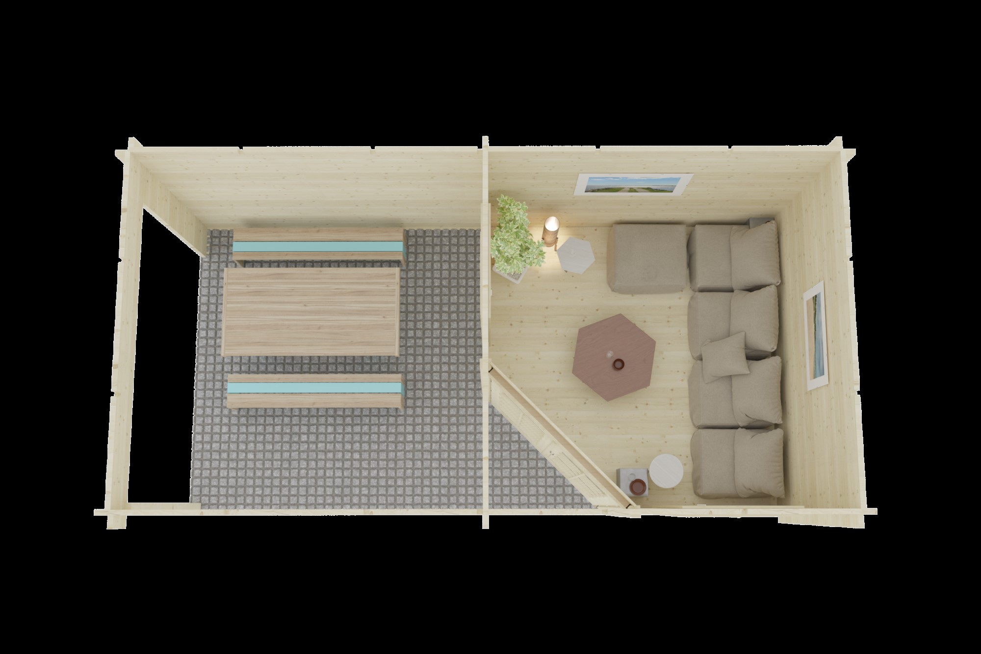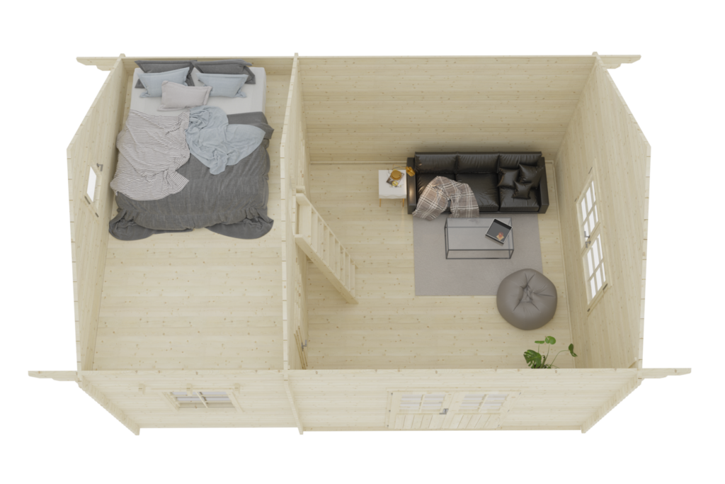 160 sq/ft plus 72 sq/ft Loft (6' high)