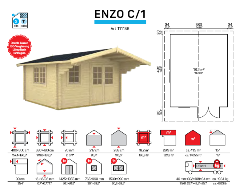 160 sq/ft plus 90 sq/ft loft (96'' high)
