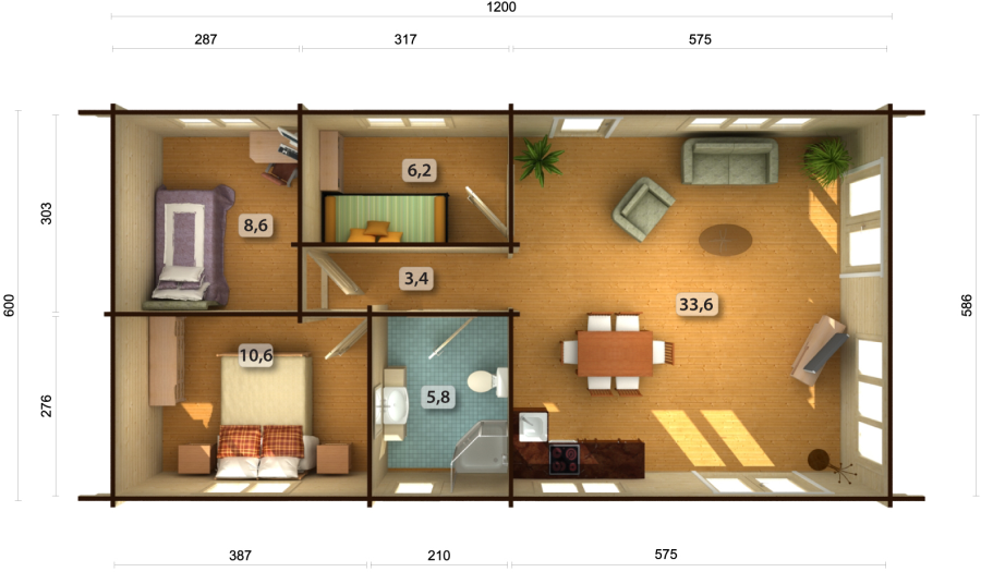 1092 sq/ft plus 277 sq/ft loft (118'' high)