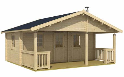 Extras include - 2 3/4'' wall logs / double ceiling / double thermal glass/ opening side window /porch with benches / interior alder benches /ice & water roofing / all pre cut parts / all hardware / thicker floor boards 1 1/8''