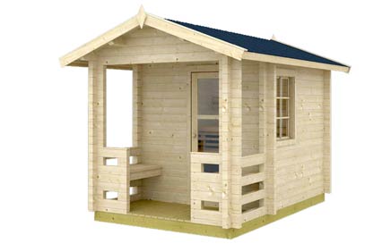 Extras include - 2 3/4'' wall logs / double ceiling / double thermal glass/ opening side window /porch with benches / interior alder benches /ice & water roofing / all pre cut parts / all hardware / thicker floor boards 1 1/8''