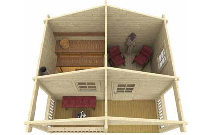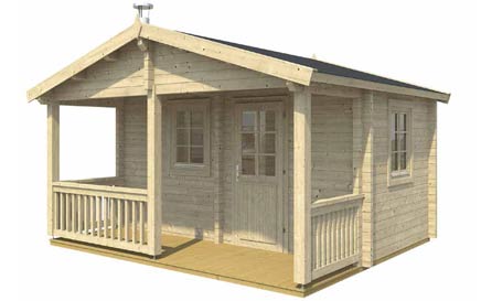 Extras include - 2 3/4'' wall logs / double ceiling / double thermal glass/ opening side window /porch with benches / interior alder benches /ice & water roofing / all pre cut parts / all hardware / thicker floor boards 1 1/8''