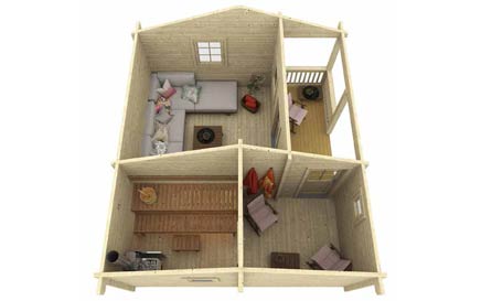 Extras include - 2 3/4'' wall logs / double ceiling / double thermal glass/ opening side window /porch with benches / interior alder benches /ice & water roofing / all pre cut parts / all hardware / thicker floor boards 1 1/8''